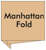 | Manhattan folds are two loops with one is small and other side is bigger of the back side. In more it is just like a centrefold label, except the top of the label is folded down, creating a flap to tuck the bottom fold into. |