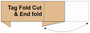 Tag fold is cut and end folded on back with one side is smaller than other side.Sizes vary on order. |